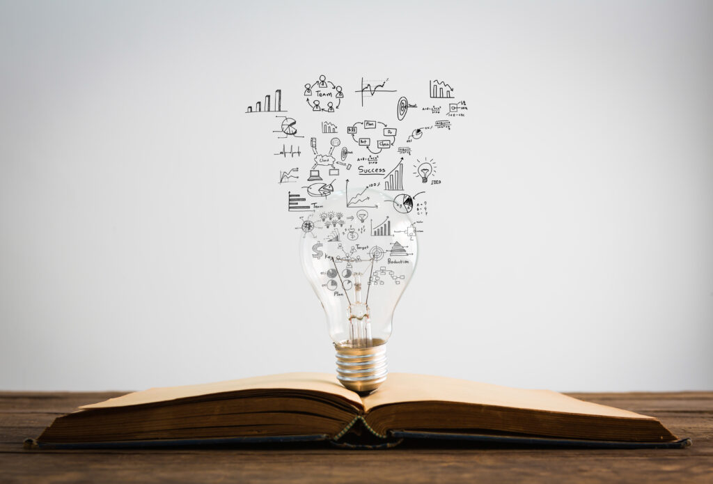 Book and light bulb of business concept